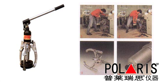 液压拉马是以液压起动杆直接前进移动,故推动杆本身不作转动。钩爪座又可随螺纹直接作前进后退之调距,操作时只要把手前后小幅度摆动,油压起动杆前移,钩爪相对应后退,把被拉物体拉出。